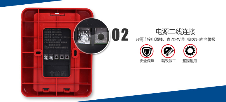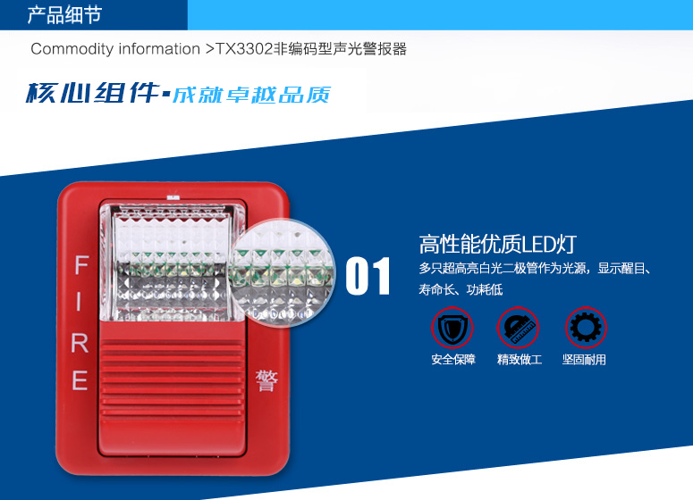 TX3302聲光警報器(以下簡稱聲光警報器),是一種安裝在現場的聲光報警設備。采用高亮度的LED光源,聲光警報器啟動后發出強烈的聲光報警信號,以達到提醒現場人員注意的目的。